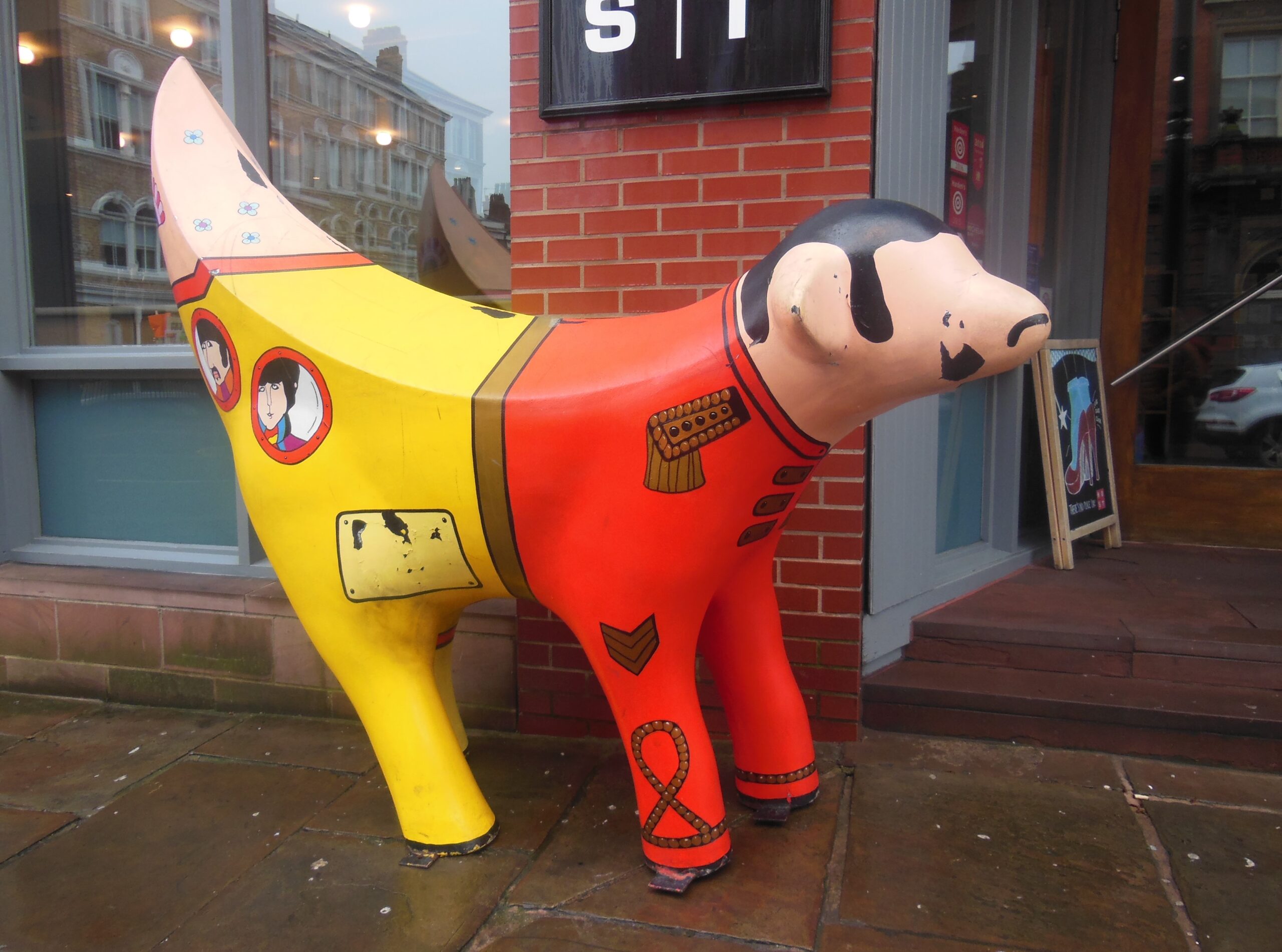Nous voilà donc en route pour la deuxième métropole économique du pays après Londres. Liverpool est une ville portuaire d’environ 500 000 habitants, cité multi-culturelle et important centre universitaire, mais surtout… la ville des Beatles ! Ils sont partout. On les trouve à chaque coin de rue, peints sur les murs ou sculptés sur les bâtiments. Leur nom hante les parages.