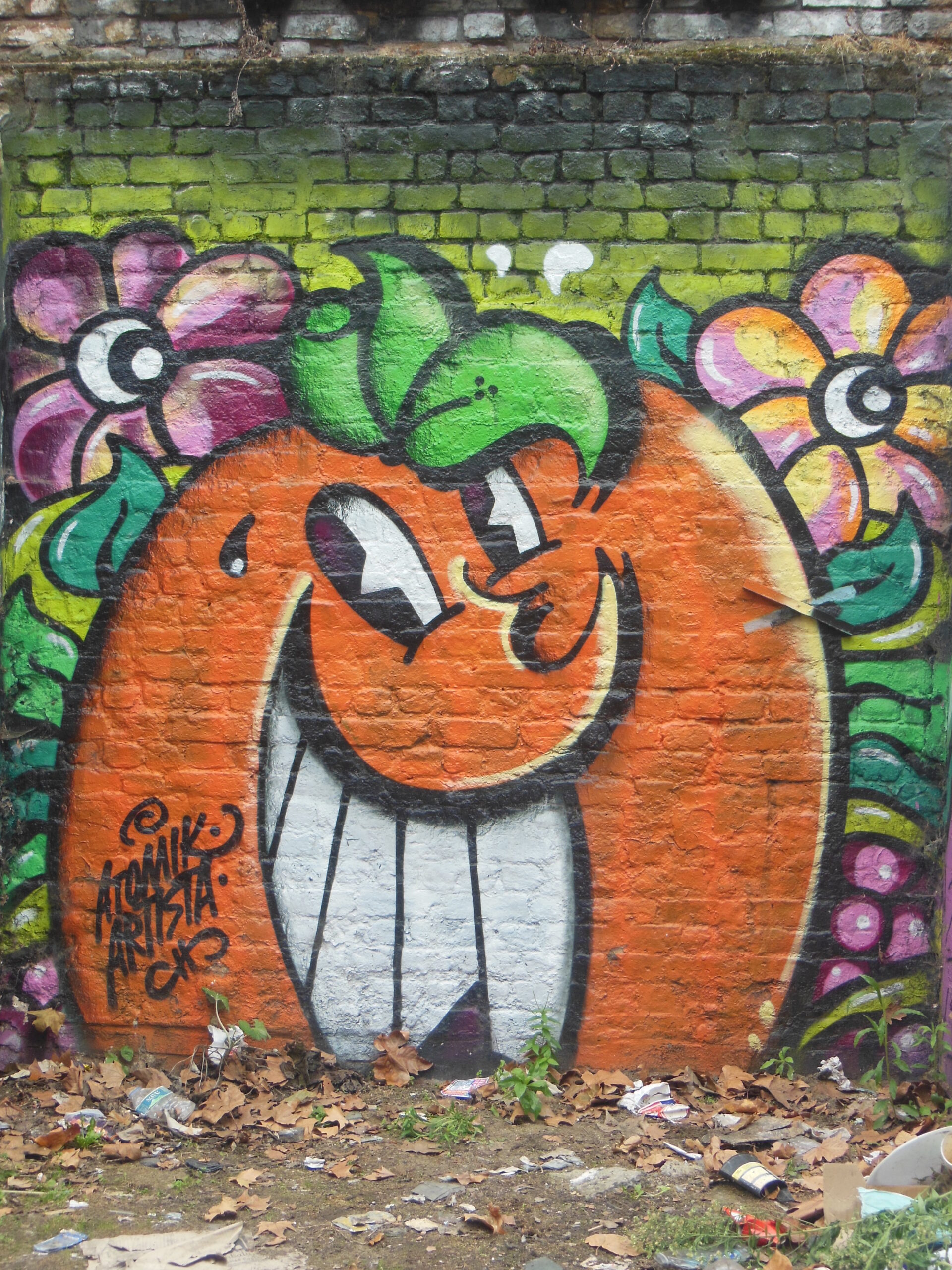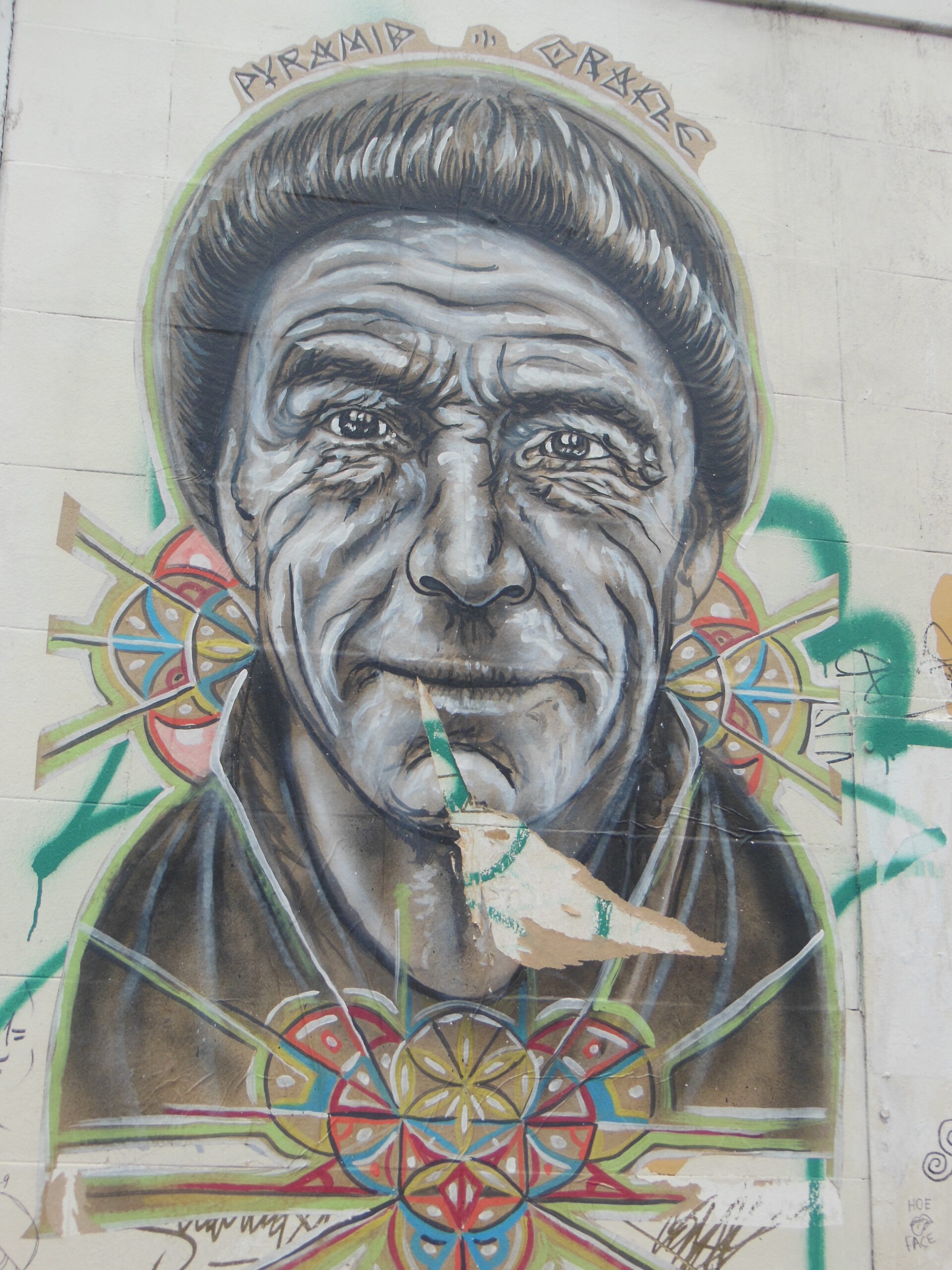 Les décorations sont impressionnantes et très bien réalisées. Nous passons d’un salon de tatouage à un magasin de vêtements gothiques, à un restaurant vegan, entre deux fresques de street art. Comme la majorité des passants (souvent Français), nous enchaînons les photos et les “là! regarde! et là!”.